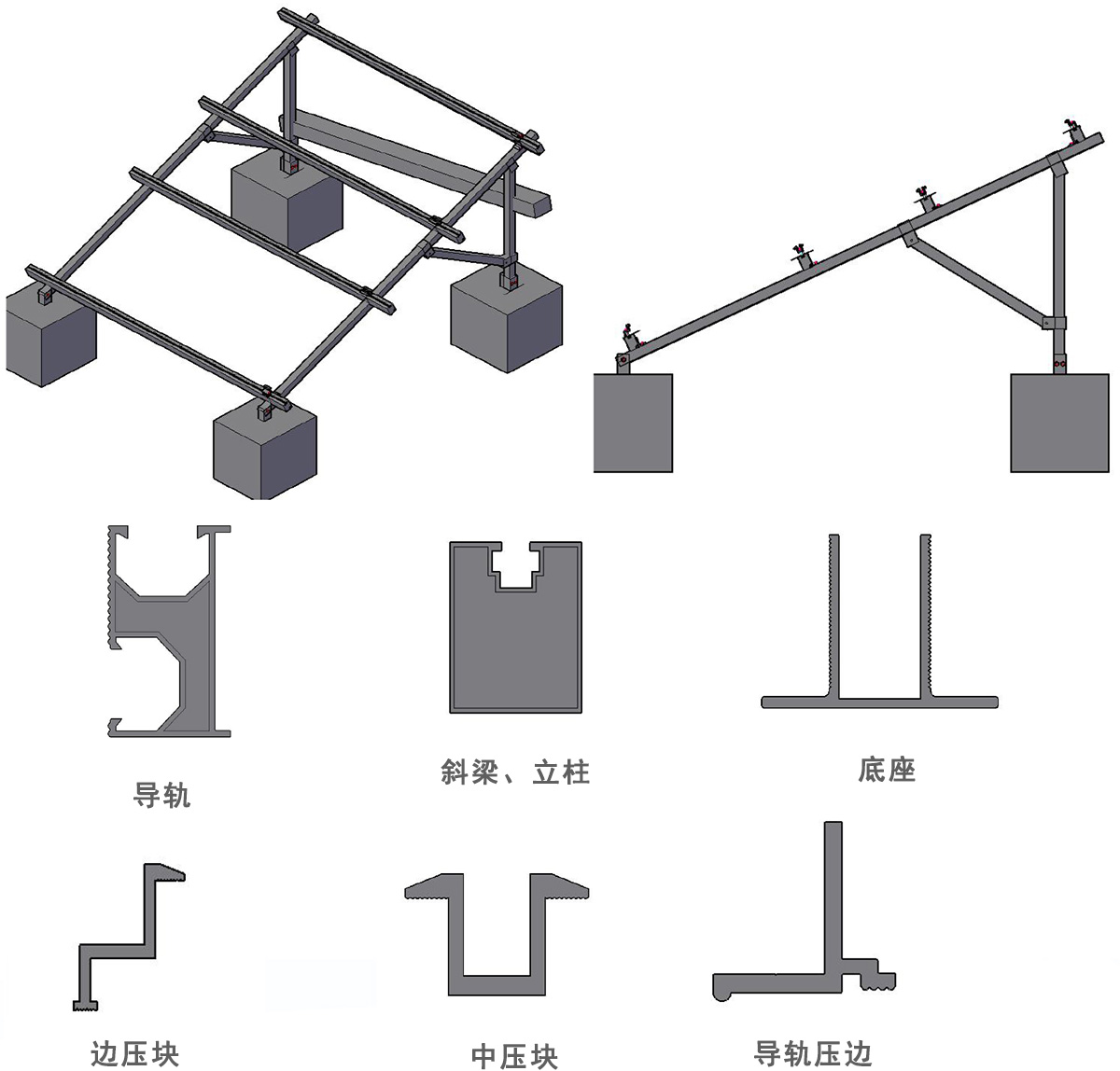 導(dǎo)軌作為檁條拖住太陽能板;